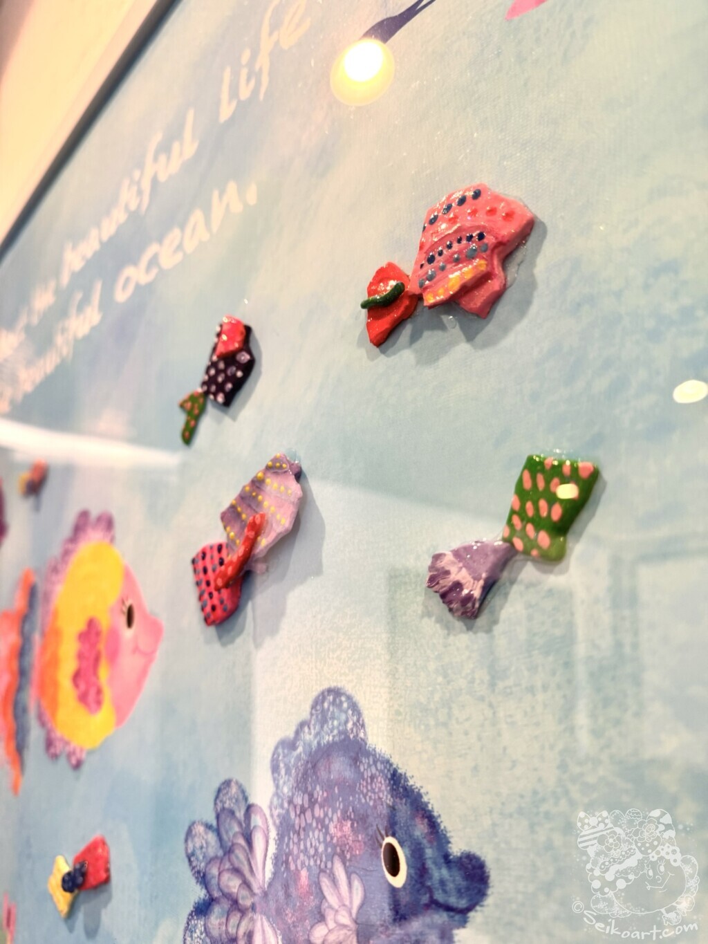 美しさと環境への問いかけを込めた立体作品に仕上げています。