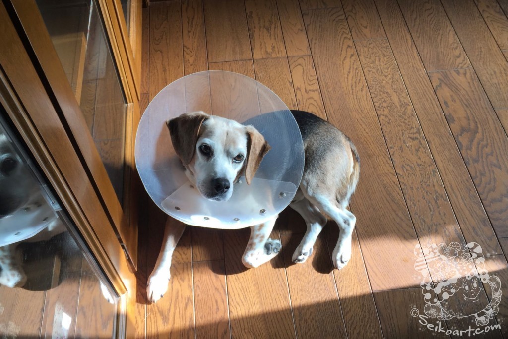 エリザベスカラーの装着が約2週間にわたり、それなりのストレスを抱えているのであろうQoo。