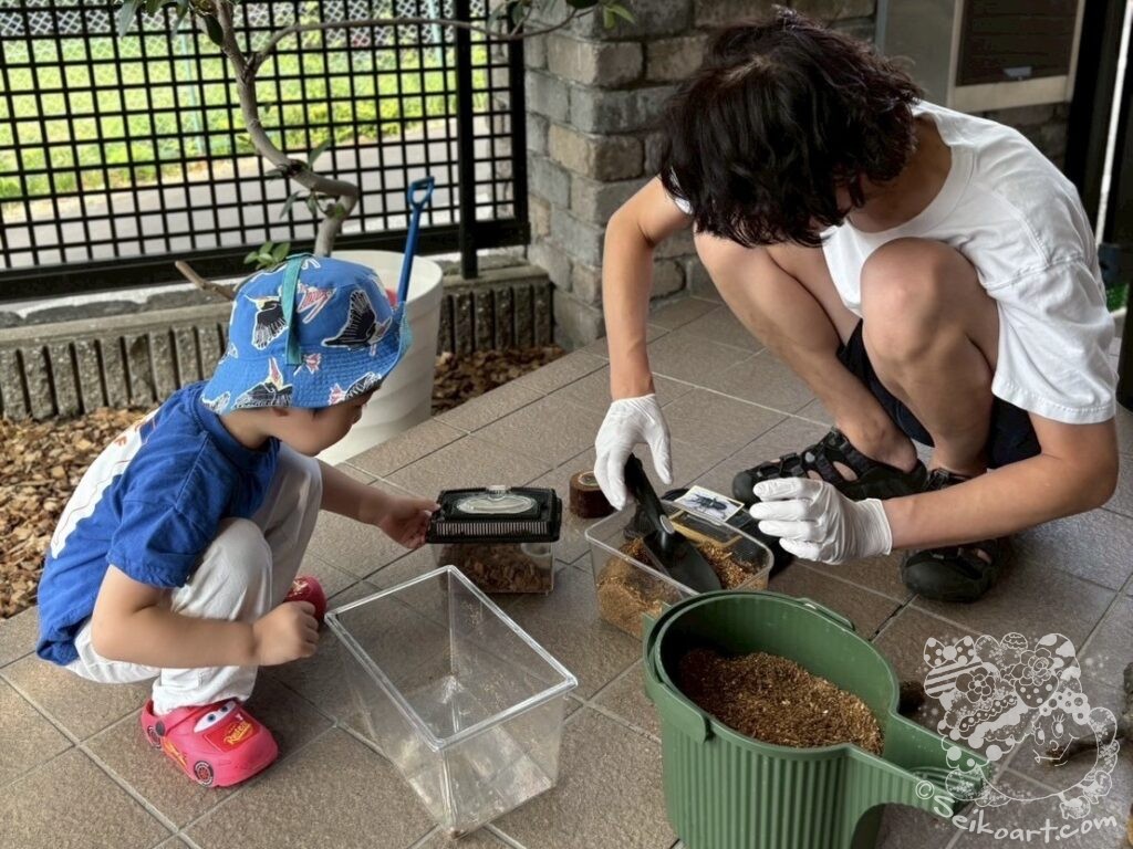 同じ時期にマット交換したヒラタクワガタのペアは、