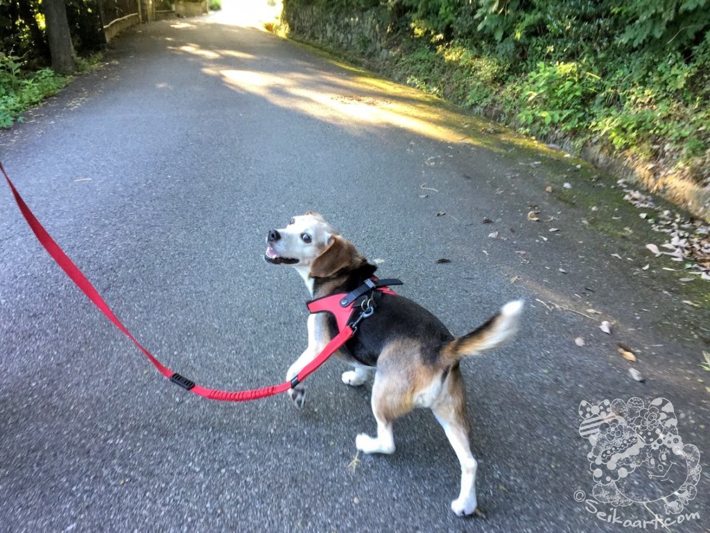 外に出て大好きな散歩がはじまり、朝からノリノリですw