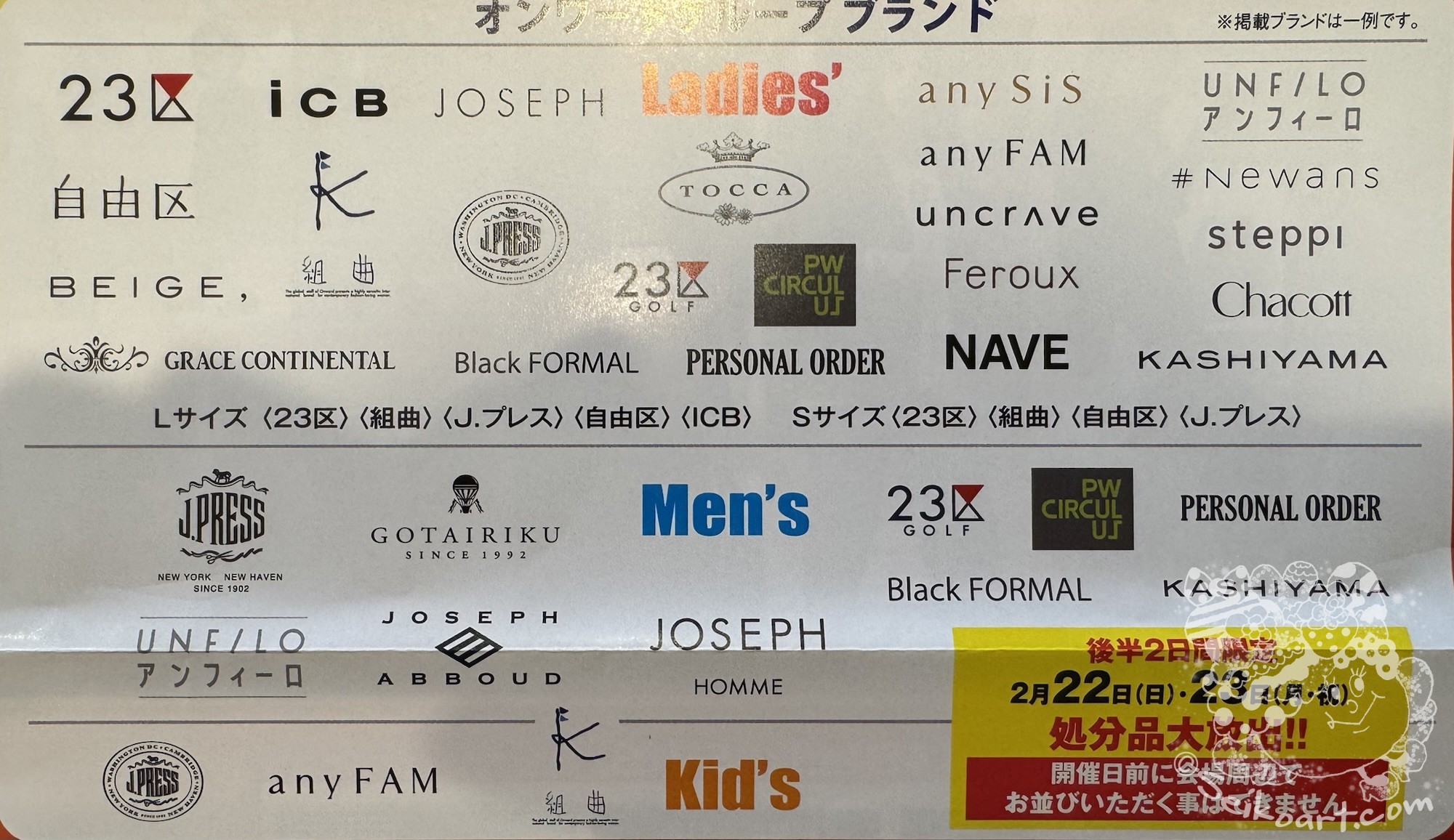2026年のオンワードファミリーセール大阪の最新情報です。